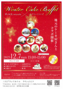 情報ご提供 三次グランドホテル ラウンジピア 三次郷心会 2025.11.18 Winter Cake Buffet 地元のケーキ屋さんとコラボ開催 PDFファイル お問い合わせは、PDFまたは画像記載の お問い合わせ先 […]