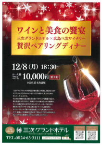 情報ご提供 三次グランドホテル 三次郷心会 2025.11.18 ワインと美食の饗宴 贅沢ペアリングディナー 三次グランドホテル X 広島三次ワイナー PDFファイル お問い合わせは、PDFまたは画像記載の お問い合わせ […]