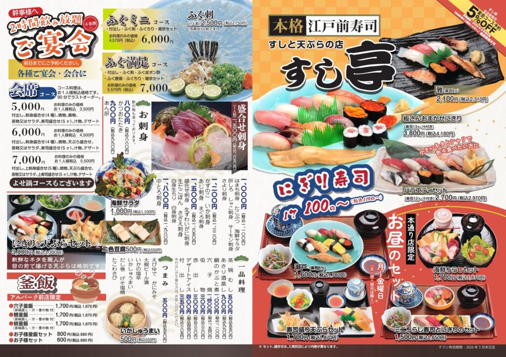 ひのきグループ:すし亭からのお知らせ